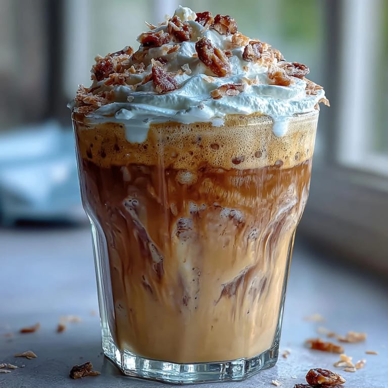 Save Imagine the perfect summer afternoon: the sun is warm, the breeze is gentle, and you're sipping on a creamy, dreamy Iced Vanilla Bean Frappuccino with Toasted Coconut Foam. This isn't your ordinary iced coffee—it's a luxurious blend of real vanilla bean, rich coffee, and velvety coconut foam that transforms a simple beverage into a café-worthy indulgence. The toasted coconut adds a subtle nutty sweetness that perfectly complements the aromatic vanilla, creating layers of flavor in every sip. Whether you're cooling down after a long day or treating yourself to a weekend pick-me-up, this frappuccino delivers café-quality refreshment right in your own kitchen.